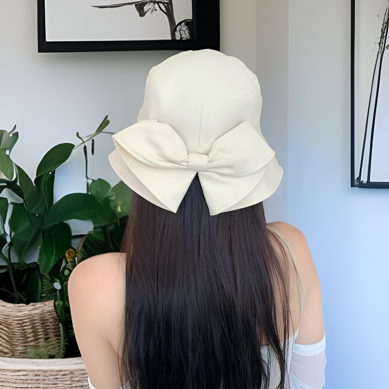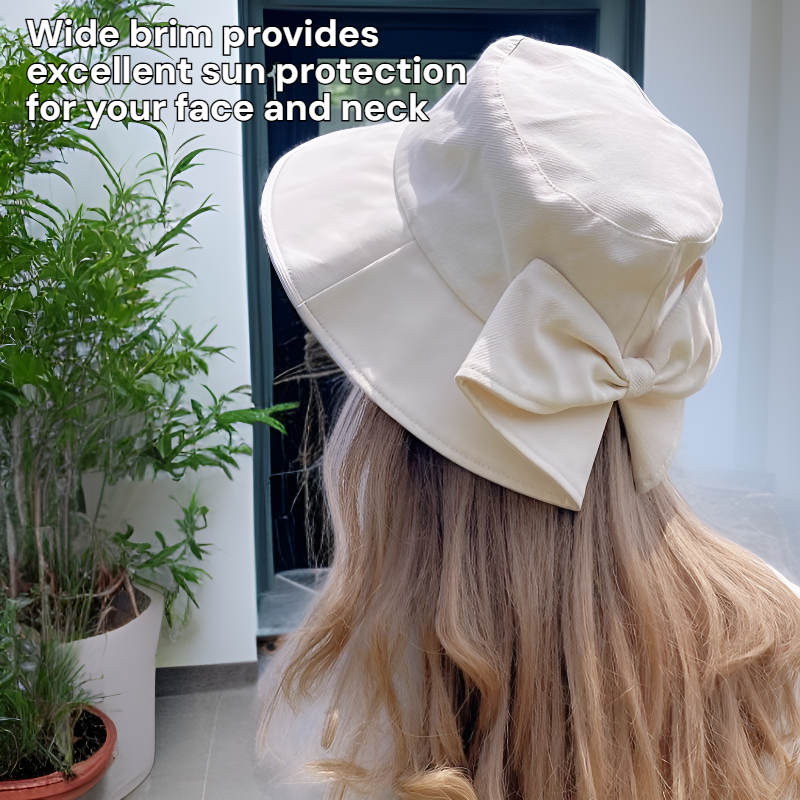 Women's sun hat with split slit and bow, versatile and perfect for vacation.